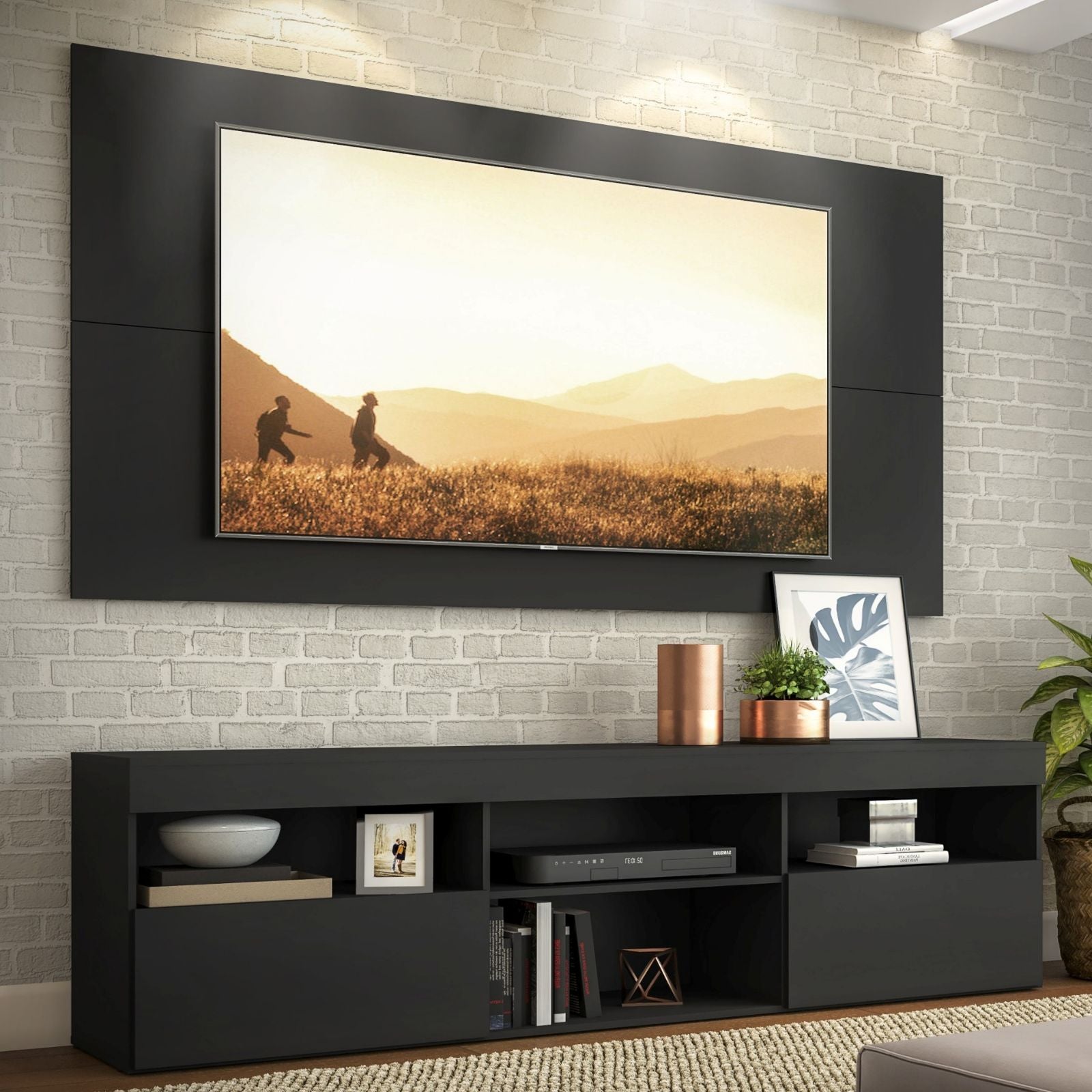 Dale un toque moderno y minimalista a tu sala con este elegante rack y panel Ideal para maximizar espacio y mantener tu entretenimiento organizado. Con un diseño funcional y compartimentos amplios para tus dispositivos electrónicos, este conjunto es la opción perfecta para resaltar tu TV y crear un ambiente sofisticado.